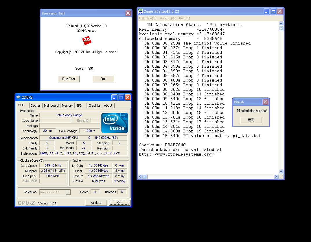 O usuário Coolaler publicou no Fórum chinês homônimo o que vem a ser, supostamente, os primeiros benchmarcks de um processador Intel da nova geração Sandy Bridge. Os resultados impressionam, tendo em vista que a CPU Sandy Bridge operando em uma frequencia de 2.5Ghz foi capaz de superar, com facilidade, um Intel Core i7 965.